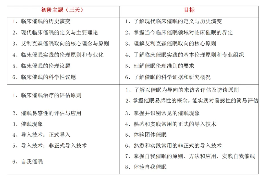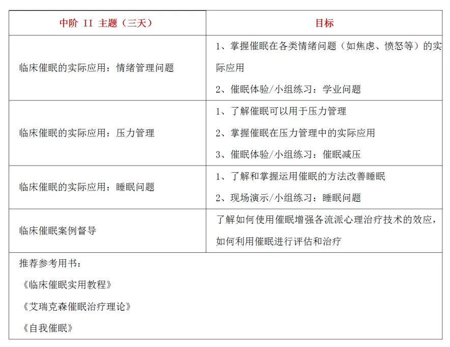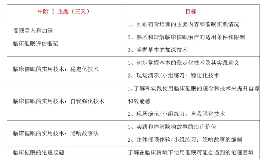 临床催眠连续培训课程设置