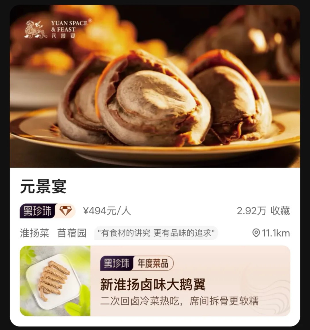 黑珍珠餐厅是“美团”与“大众点评”从2018年开始发布的首份提出中国美食标准的美食指南,以烹饪出品、服务环境、传承创新三个方面对入选餐厅进行评价,最后上榜餐厅由众多匿名评委通过匿名造访、打分、遴选而出。