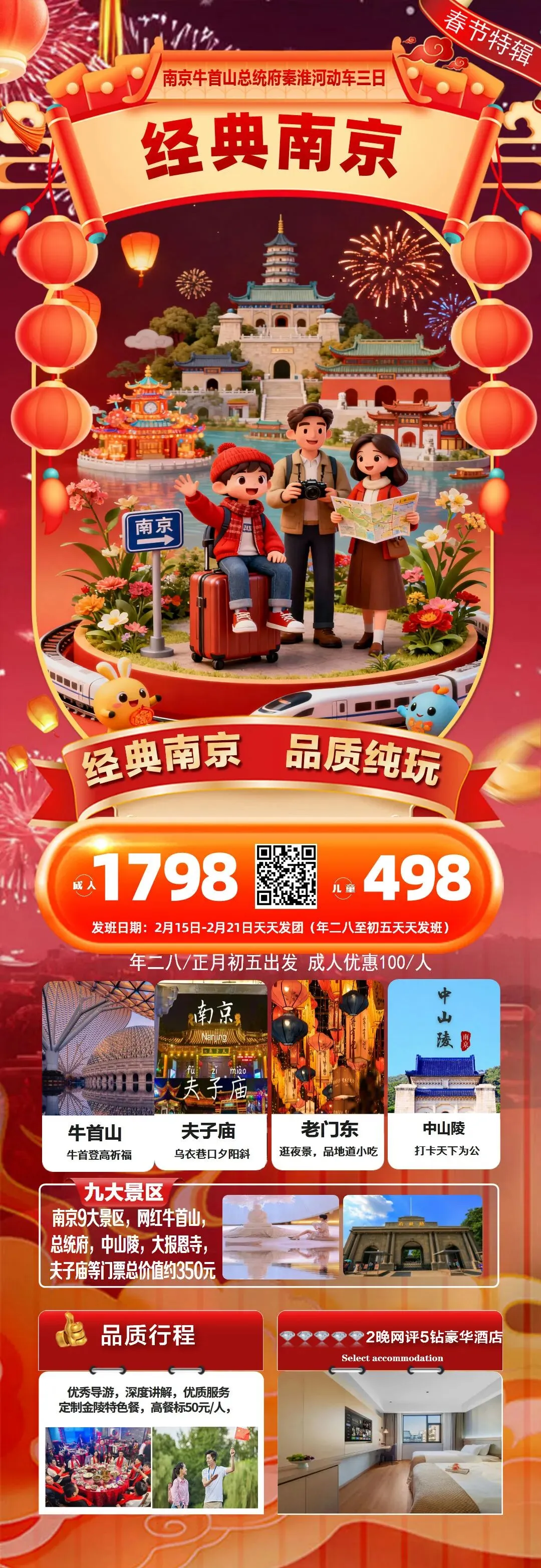 【优秀导游】:全薪讲解服务型导游,全年0投诉,深度的讲解,优质的服务,让您的江南之旅变的美好!【纯玩享受】:保证全程无购物、无自费,零钱旅游,纯玩品质,尽享金陵纯净之旅,一次旅行,记忆一生!