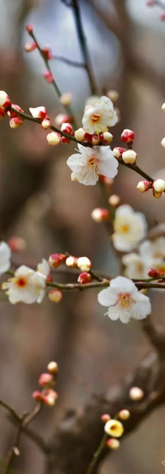 红冬至:属于江梅品种群。得名于花期,每年花期总固定在冬至前后,守信得像一位故人。今年依旧如约而至,在冬至节那几天准时绽露芳容。单瓣花朵呈清雅粉红,五个花瓣舒展如碟,不着繁复修饰,却带着江梅品种独有的清逸风骨,是江梅品种群的优良早花品种。