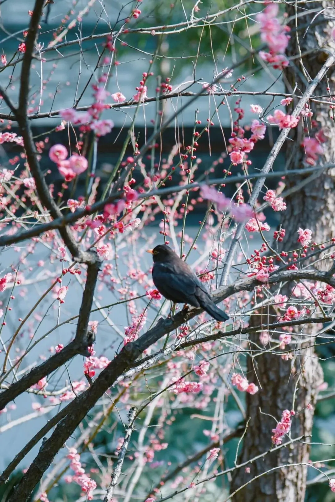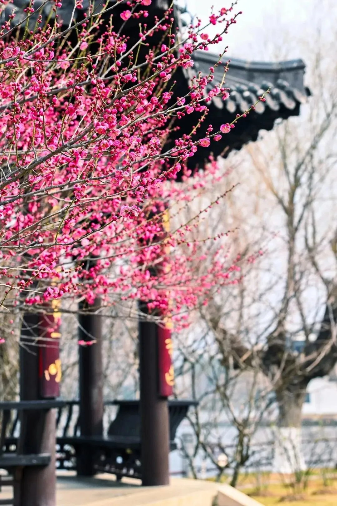 · 含香轩阶前:仰拍梅花与飞檐构成的诗意框景