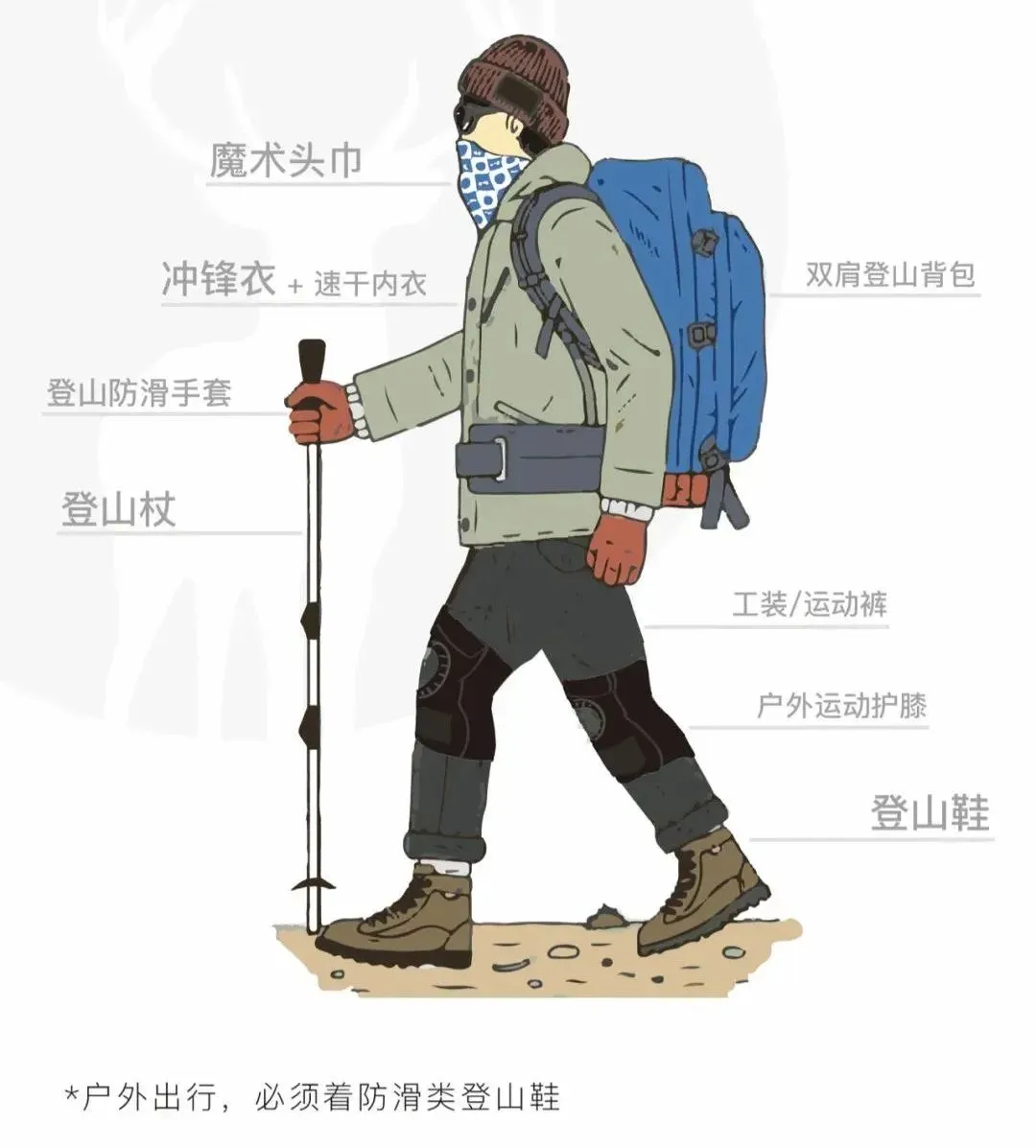 PS:以上装备均为建议但不强制,安全起见请穿戴登山装备。