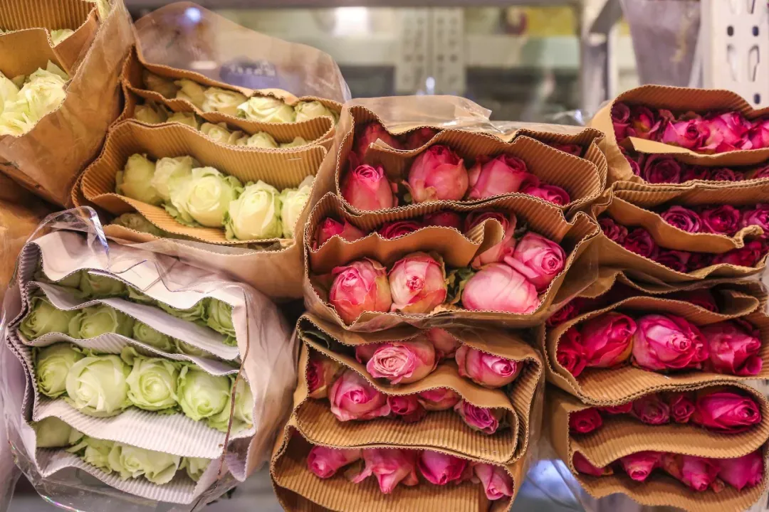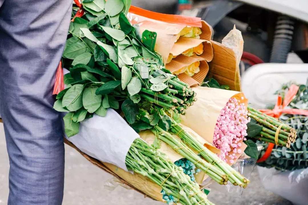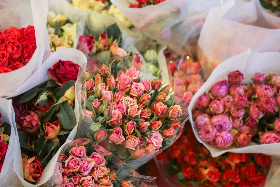 在汉中门花市,有堆叠整齐、包装精致的玫瑰,饱满得娇艳欲滴。在这里的花基本都不单支售卖,如果想插出别样的花景,大部分情况下还是得买上好几大束带回家。
