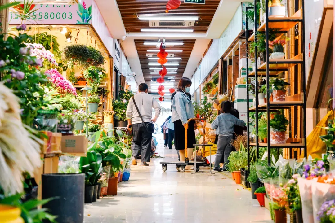 正因如此,岁数较大的南京花卉西市场,依旧用塑料大棚覆盖着屋顶。如果你是第一次来的话,那么推开塑料门帘进去才会发现别有洞天。