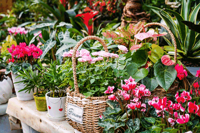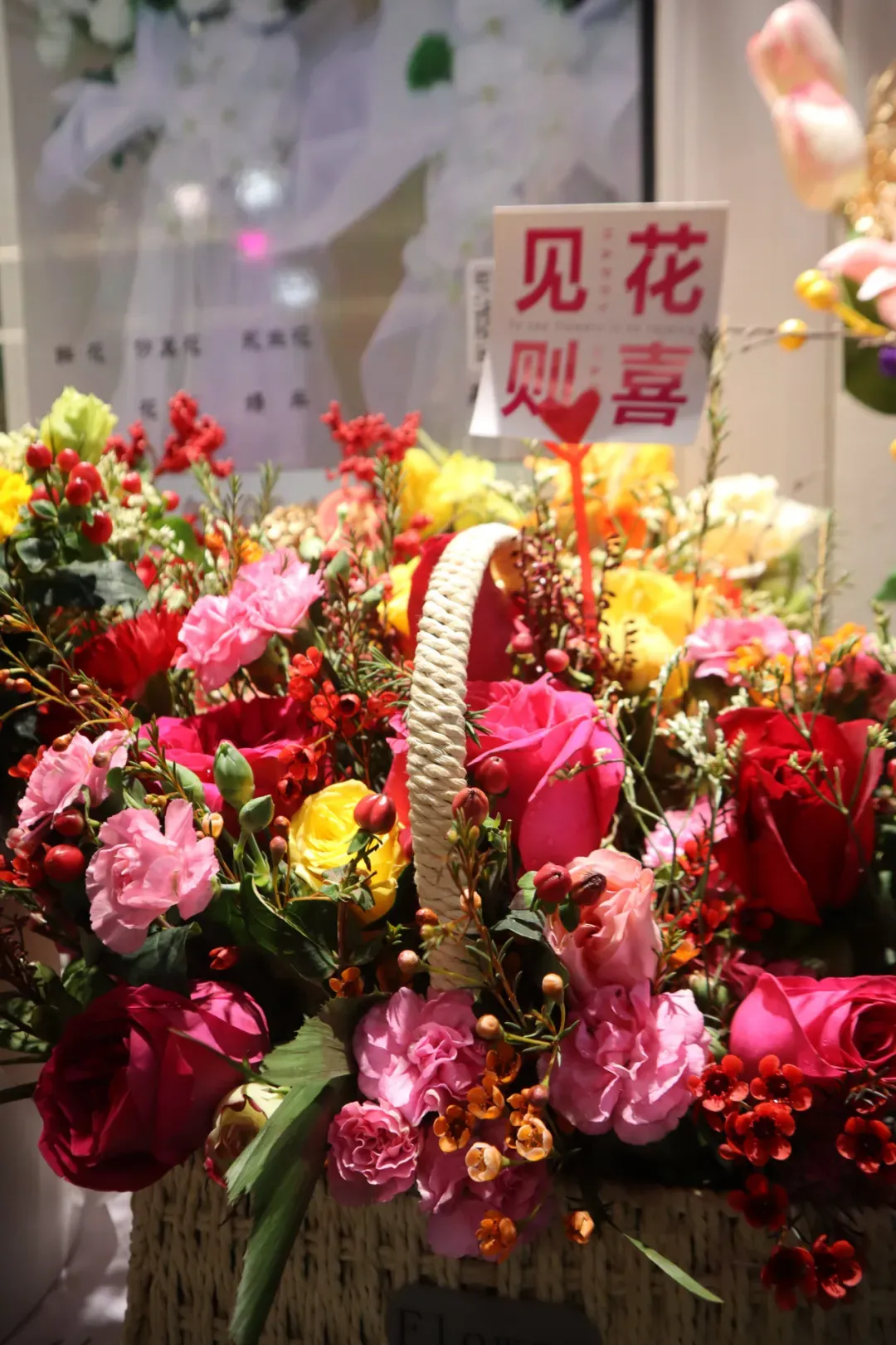 各色各样的年宵花在这里数不胜数。粉色玫瑰在文艺感十足的篮子里,一侧的变色茶花旁的也黯然失色。