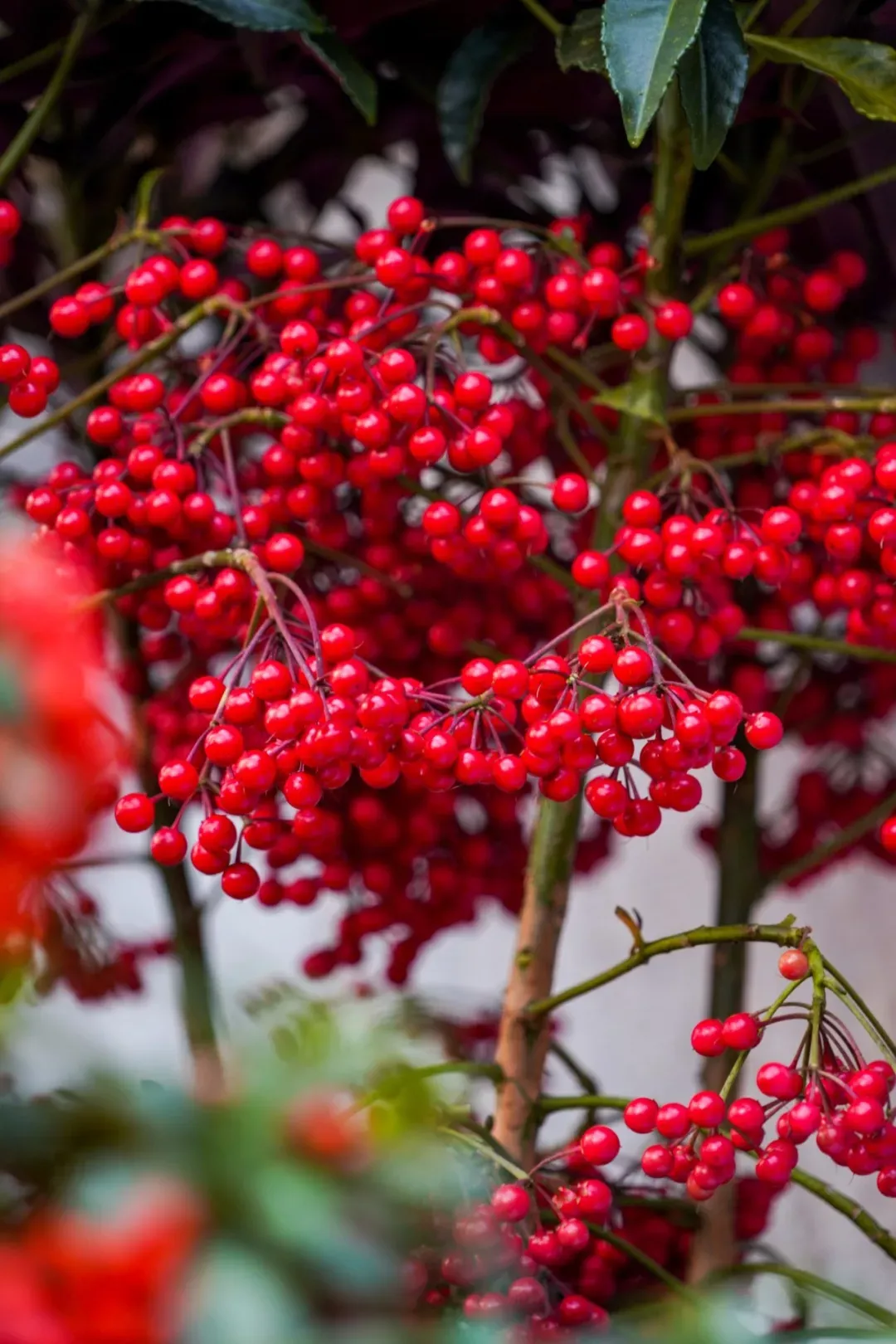 而吉祥果和富贵子,都是火红火红的果实遍布枝头,和春节之红相得益彰。