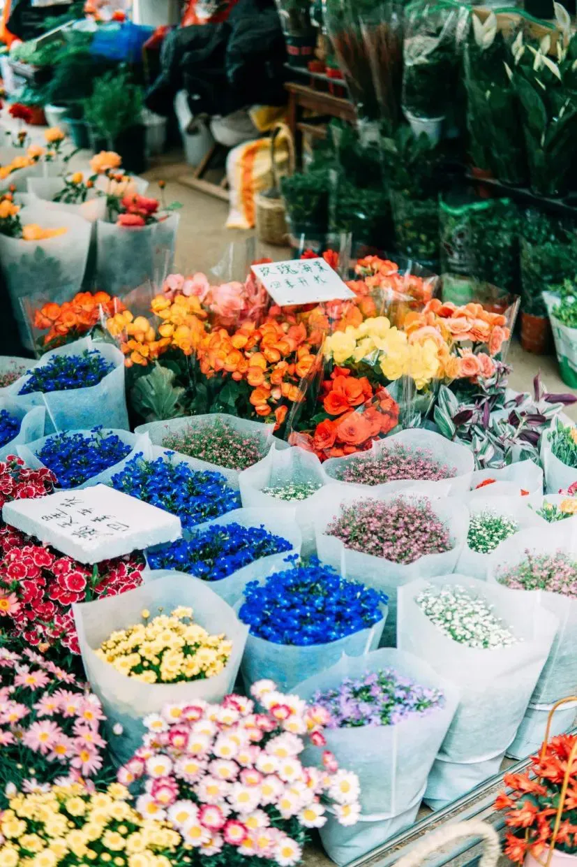 几乎每一家花店的花花都是从昆明空运而来,所以虽然花市开门较早,但早上的花看上去有点蔫。得等老板泡点水,到下午两三点左右,才是你逛花市的黄金时间。