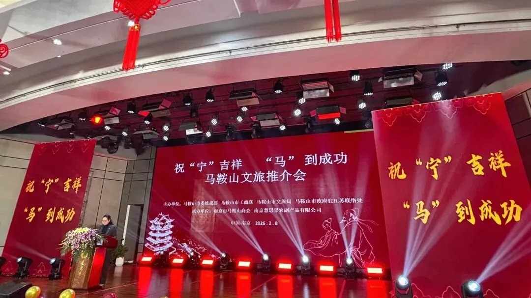 随着宁马城际的开通,为了精准拓展南京客源市场,2月8日下午,由马鞍山市委统战部、市工商联、市文旅局、市政府驻江苏联络处联合主办,南京市马鞍山商会协办的“祝‘宁’吉祥 ‘马’到成功”马鞍山文旅专场推介活动,在南京市隆重举行。活动通过专题推介、企业展示、交流洽谈等形式,向南京各界生动呈现了马鞍山丰富的文化旅游资源和独特的城市魅力,为两地文旅产业深度合作搭建了新桥梁、注入了新动力。