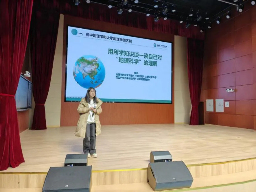 曹彦柠同学开展《可以“计算”的地理》特色课堂,向高中学生介绍打破学科壁垒,创新融合地理学科与计算思维的地理信息科学。并通过实际案例展示地理研究的科学方法,呈现传统学科的现代魅力。