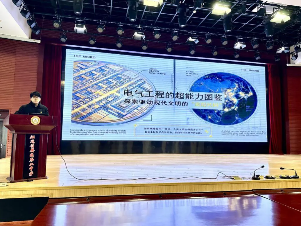 吴逸飞同学开展《电气功成的超能力图鉴》课程,他摒弃晦涩的专业表述,以通俗易懂的语言解读电气专业核心原理,结合日常生活中的电气技术应用案例,生动拆解专业知识,让学生直观感受工科专业的实用价值与广阔发展前景。