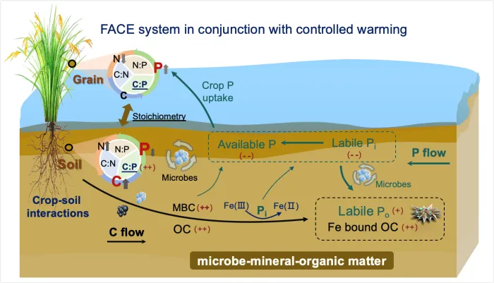 在全球气候变化持续加剧的背景下,大气CO₂浓度升高与气候变暖正协同改变农田生态系统的物质循环过程。稻田作为全球重要的粮食生产系统,其养分供给稳定性直接关乎粮食安全与农业可持续发展。磷(P)是限制水稻生长的关键营养元素之一,植物主要吸收无机磷酸盐形态的磷,其生物有效性受土壤矿物学过程与微生物转化动力学的共同调控;同时,稻田灌溉与排水引发的氧化还原条件周期性波动,会进一步改变铁矿物形态、有机质反应活性及磷的吸附-释放平衡,使得稻田供磷过程更趋复杂。然而,目前科学界对气候变化多因子协同作用下稻田供磷能力的长期演变趋势及其调控机制仍缺乏系统认识,这不仅制约了气候变化情景下农田精准养分管理与风险评估的开展,也为未来粮食安全生产带来潜在不确定性。