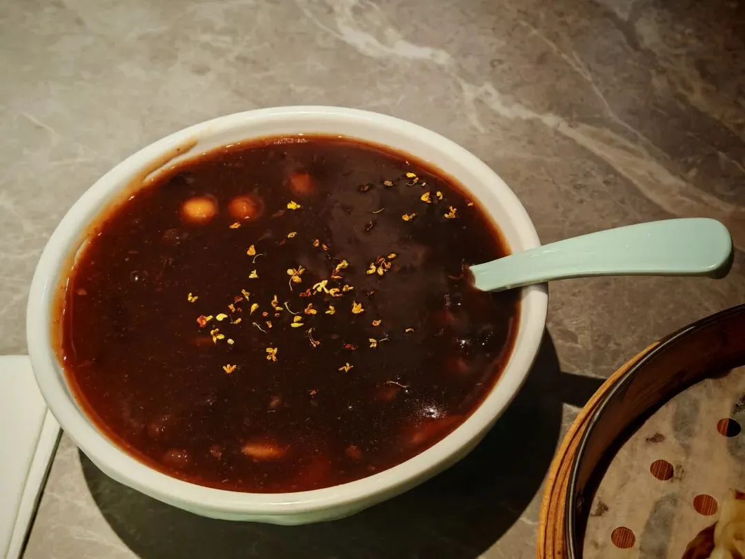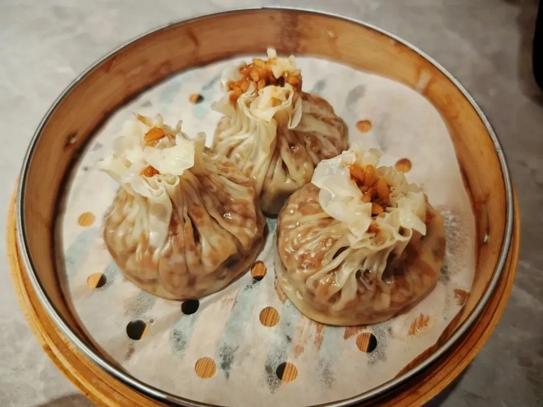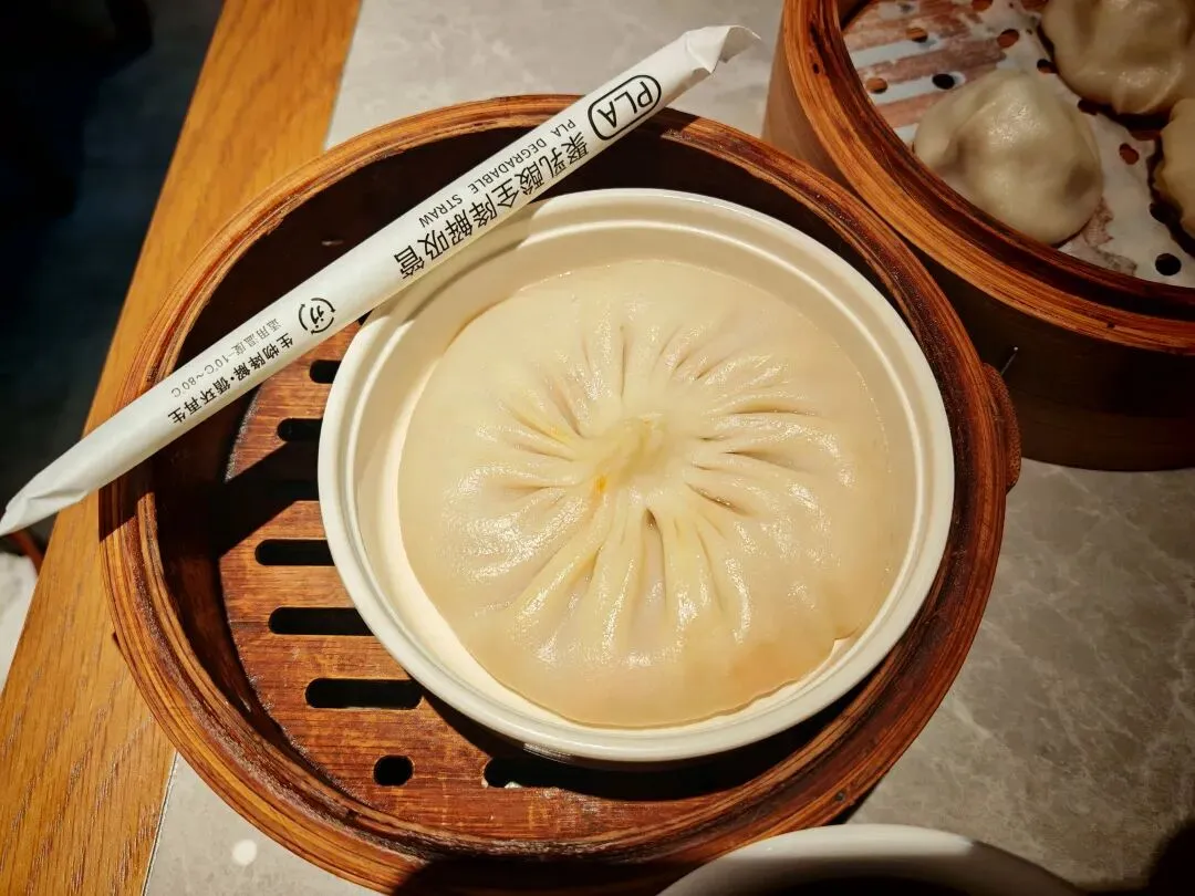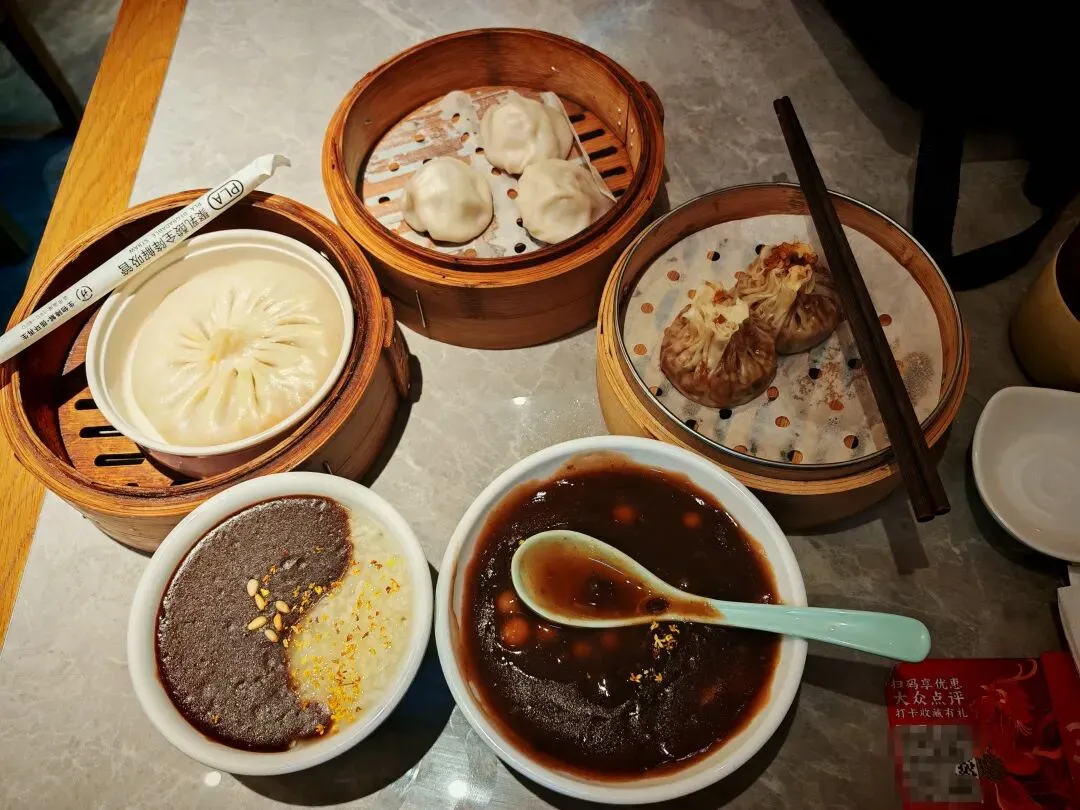 这个就是糖粥,美团的券3.9一碗,在苏州卖的很多,就是纯红豆沙盖在粥上,这个红豆沙的味道是最纯的,没有加任何东西。不过这里挺鬼的,他把这个碗做的太深了,底下全是粥,就在这上面薄薄一层的一半盖上红豆沙了,去苏州喝的碗没有那么深,几乎就是1:1的红豆沙和粥。 本来不想喝红豆小圆子了的,但一看只要5块钱,我还是狠狠的心动了,这里做的跟昨天那个回味鸭血粉丝汤做的挺像的,藕粉加的很少,而且小圆子偏少一点,红豆沙还不错。 这个说是松子烤鸭烧麦,¥9,还说是南京传统,我怎么从来没见过呢,还挺有意思的,就是糯米,松子和烤鸭,不过并没有什么特殊的味道。 这个是招牌鸡汁汤包了,3个只要6块钱,还以为会狠狠宰游客的钱呢,没想到非常实惠,就是普通汤包的感觉,鸡汁在汤包里面,比较香甜。 超大手拆蟹黄汤包,这个是挺有噱头的,在夫子庙那边店几乎都在卖这个,以前觉得买这玩意被宰,这次偶尔也想尝一下。26块钱一个,里面是满满的蟹黄和蟹肉,得先用吸管把汤汁给吸出来,既好玩,同时如果破了的话,汤汁很多就全漏出来了。 给运动先补充一下能量。另外走到这家店外面才发现,这家总店还有外设窗口,卖糕点和包子,鸭货等等,挺受欢迎的。