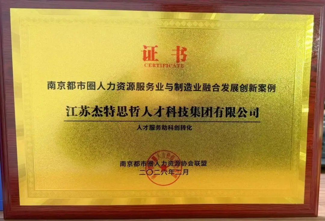 未来,杰特思哲将以此次荣誉为新起点,不断优化两业融合解决方案,积极参与南京都市圈人才链与产业链深度融合建设。公司将坚守服务产业、赋能人才初心,联动都市圈各方资源,推动人力资源服务与制造业双向赋能、共生共荣,为区域产业高质量发展、现代化产业体系建设提供更坚实的人才与智力支撑。