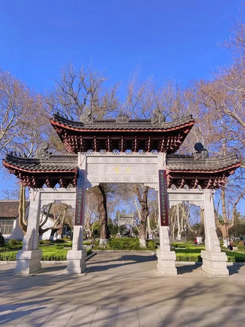 迟日丽,老虬盘。空遗雕像坐楼前。悠悠文脉承山水,化作清音亘古传。