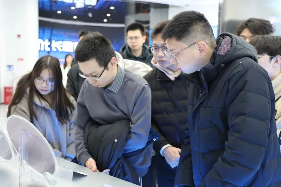 在长鑫存储,校招负责人王国瑞向师生代表团全面介绍了公司的发展历程、核心技术突破及人才培养体系,重点分享了企业在DRAM领域的关键创新突破、核心产品应用场景,以及针对新入职员工量身打造的分层分类职业发展路径。京东方全球校园招聘部华东大区负责人徐伟堂等专家带领大家深入了解了京东方在信息交互、智慧校园、数字艺术、视觉健康等多应用场景的技术创新以及在液晶显示、物联网业务创新等方面的最新成果。科大讯飞校园招聘经理王祯老师详细展示了科大讯飞在“讯飞智作、AI听见、讯飞星火大模型、AI+教育”等模块的主要特色成果,以及近期招聘岗位专业需求。在蔚来南京区域公司HR张斌的组织下,师生代表团一行走进NIO House与智能生产车间,实地观摩全自动生产流程,亲身感受中国新能源汽车的科技创新魅力。在晶合集成,师生们参观海峡两岸集成电路产业合作试验区展示馆,在无尘室的参观通道进行观摩,并聆听训练发展部部经理束乐等负责人介绍公司发展战略。
