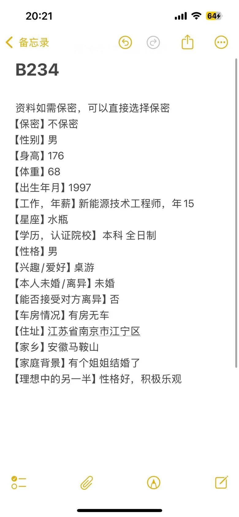 南京脱单|97年,男,身高176,本科学历,新能源技术工程师,马鞍山人在,目前在江宁区
