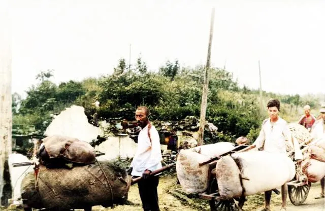 画面里的独轮车咯噔咯噔,车上捆着鼓鼓囊囊的布包,前头人弓着背使劲推,汗顺着鬓角往下淌,路边还有人跟着跑着扶一下,奶奶说这叫“力气换饭钱”,不推不活。