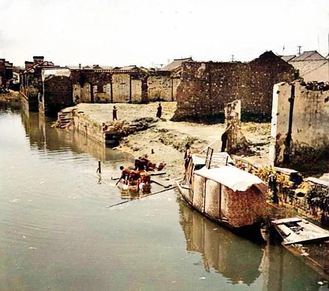 这条城河边,破墙映在水里,几位妇人跪在踏板上捶衣,木锤“笃笃”响,船篷下面晾着被面,被风一掀一掀,小时候我跟着母亲学拧衣角,手一冷就喊,母亲只说“忍一忍,太阳上来就好了”。