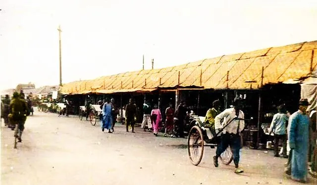这排草棚集市,篾编的顶子在风里轻晃,车夫拖着空车走过,买卖人低头抄算盘,偶有吆喝一声,远处有人讨价还价,声音散在天光里。