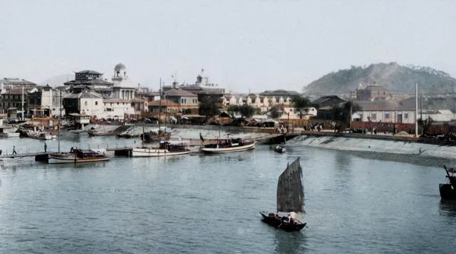 这片开阔水面,远处山包托着城市,几只机帆与木帆错着行,风一进帆,船身微微侧,水里就醒来一道银的纹路,码头上有人朝岸招手,像在等谁回家。