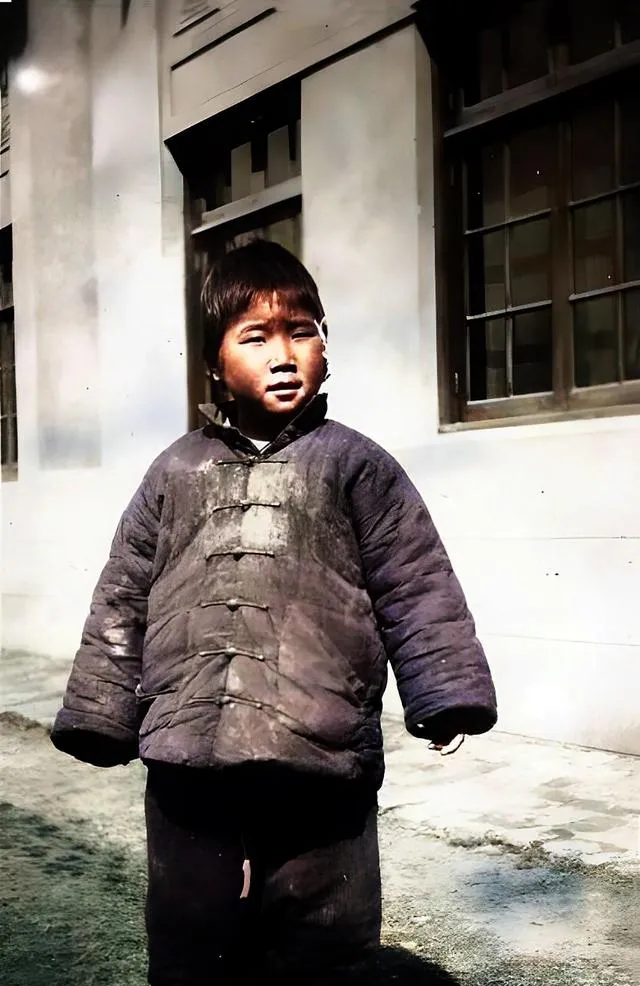这个穿着肥大棉袍的孩子站在墙根,脸上有泥印,眼睛亮,嘴角抿着,他大概还不懂什么叫战争,懂的只是冷和饿,妈妈看了照片只叹一声,说“活下去,先活下去”,以前我们求活命,现在我们求不再重来。