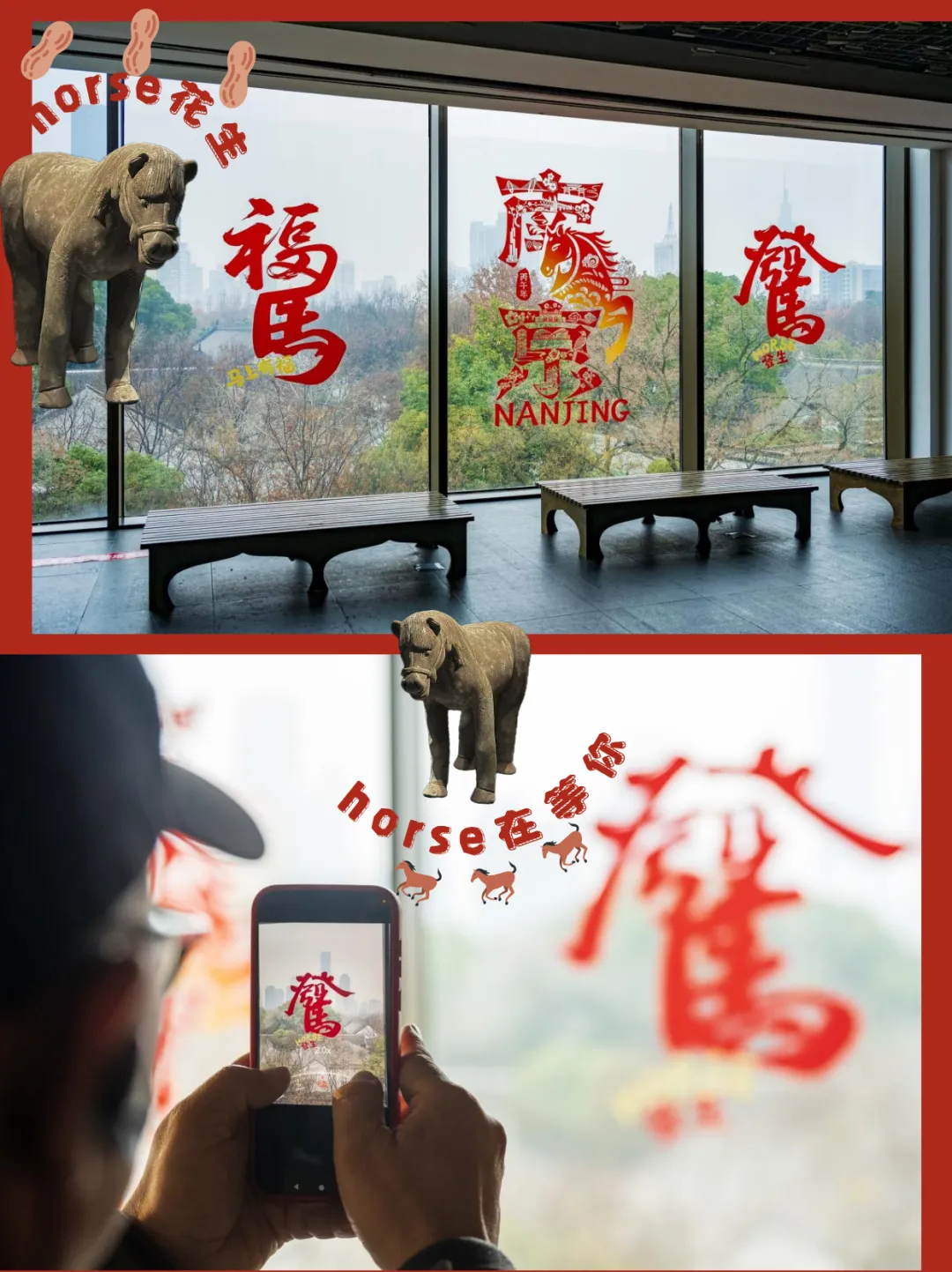 一扇窗,隔开千年时光,也连起一片心意。当火红的骏马窗花,贴上六朝博物馆那面被誉为“网红”的巨幅落地窗,金陵的年味,便在这古今交融的瞬间,格外浓烈起来。