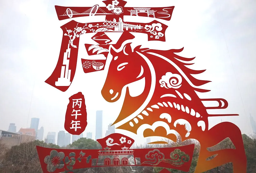 今年,“非遗福窗”再度翩然而至。作品特邀南京剪纸省级代表性传承人张钧担任设计顾问,以生肖马为魂,融入昂首腾跃之姿。其身形流转间,既有剪纸艺术的灵秀传承,亦勾勒出南京城的当代轮廓。