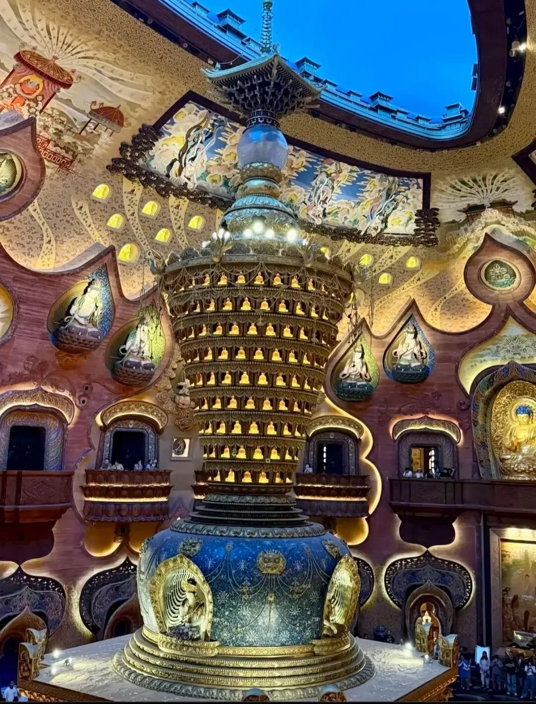 尤其是步入地宫,仰望360度环绕的金箔穹顶,精雕细琢的佛像与变幻的光影,营造出极其庄严圣洁的视觉奇观。无论是否信仰佛教,都会被这极致的空间美学所折服。