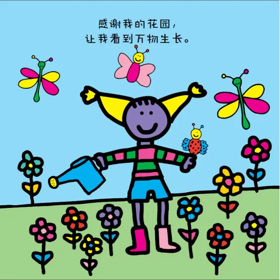 绘本以孩子的纯真视角,用直白简短的语言和明快童趣的插画,将抽象的“感恩”具象化。从感谢自己的头发、耳朵、双手,到感谢音乐、色彩、花园,再到感谢家人的拥抱、朋友的陪伴、自然的馈赠,没有复杂情节,却让孩子读懂:感恩藏在日常点滴里,用心发现就处处温暖。