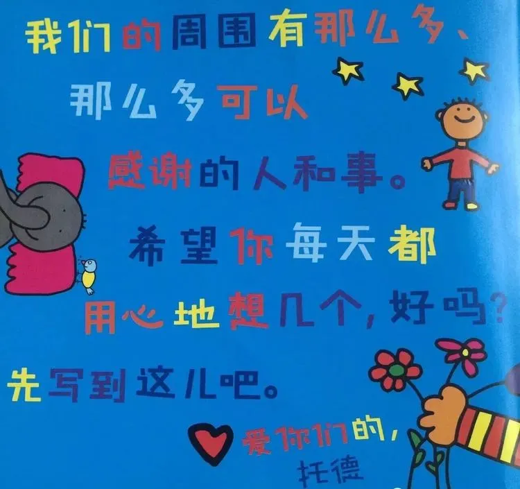阅读中,孩子们不仅能认识生活里的点滴美好,更能学会关注自身、共情他人,懂得主动表达感谢,在潜移默化中培养感恩之心与积极的生活态度。这本绘本既是幼儿园情感教育的优质素材,也是亲子共读的温暖选择,让感恩成为孩子成长路上伴随一生的美好品质。