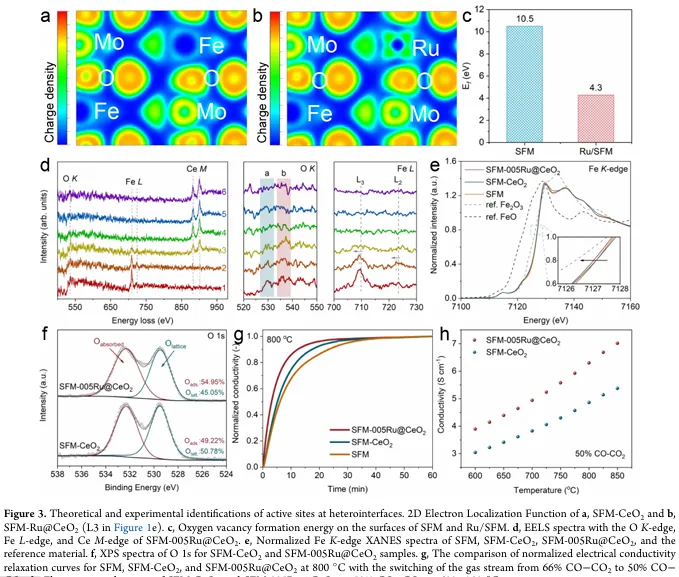 通过Ru定向迁移,增加了异质界面处的氧空位浓度,优化了Fe离子的电子环境,促进了CO2的吸附和活化,降低了CO2RR的能垒。