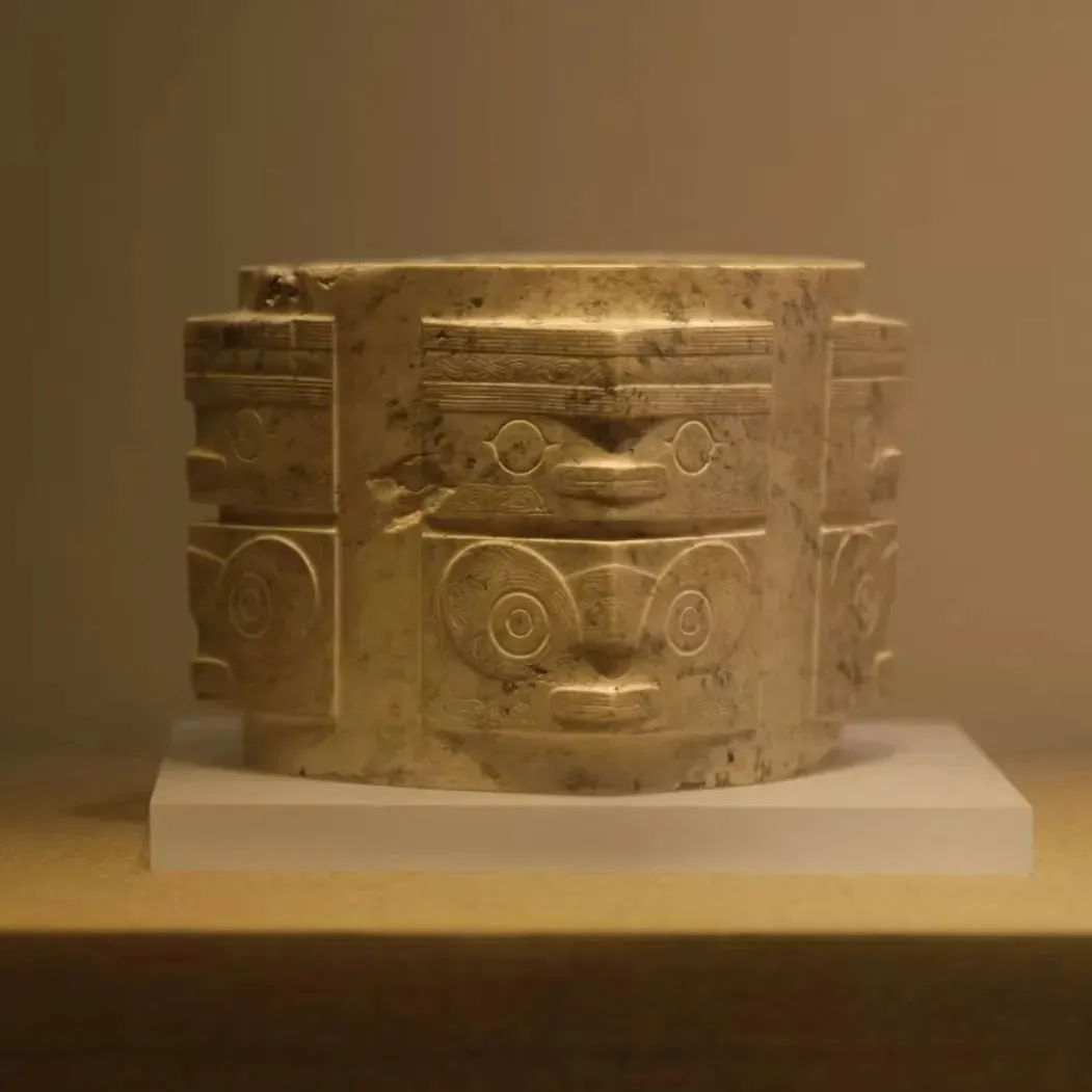 武进寺墩遗址四号墓葬出土。由外方内圆的筒形体构成,四角有竖槽或分缝,上部为神人纹饰,下部为兽面纹饰。被认为是良渚社会的“神徽”,象征着通天之神巫的形象。