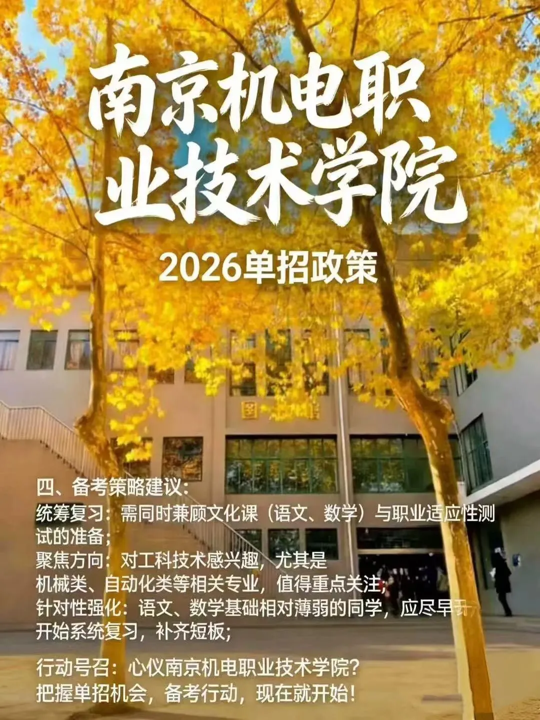 · 行动号召:心仪南京机电职业技术学院?把握单招机会,备考行动,现在就开始!