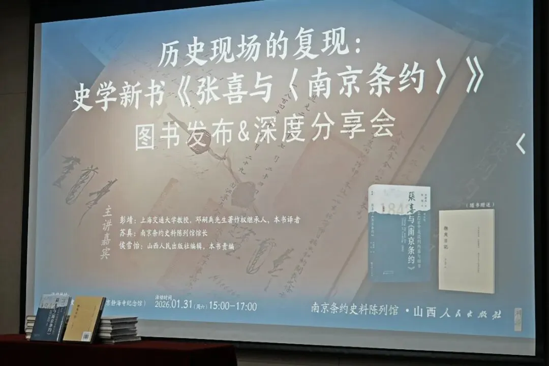 2026年1月底,南京的温度曲线忽然凹陷出一个深坑。根据天气预报,整个周末,南京人民都将在雨夹雪天气中度过。然而,在1月31日,“历史现场的复现:《张喜与〈南京条约〉》新书发布会和深度分享会”活动举办的当天,南京却从阴雨中暂歇,天色隐隐见晴。