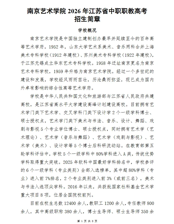 >南京艺术学院2026年江苏省中职职教高考招生简章(附2025年投档分及招生专业)