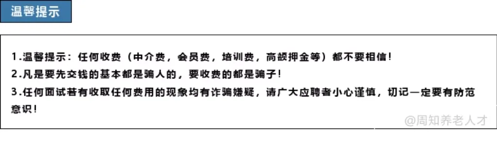 本平台的信息来源于网络,其版权归原作者所有。公众号转载这些信息的目的仅在于让求职者周知。若出现侵权情况,请及时与本人联系(微信号:zhouzhi0521),我们将迅速进行更正、修改或删除,在此表示感谢。