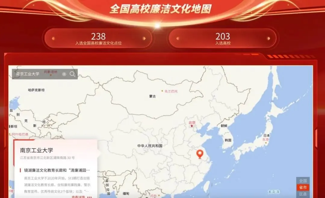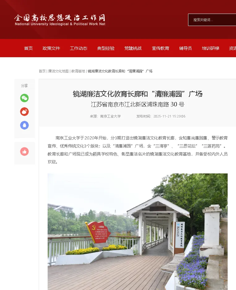 近日,教育部第十届高校廉洁教育系列活动“传廉促担当”廉洁文化地图素材征集结果公布,我校镜湖廉洁文化教育长廊和“清廉浦园”广场入选“全国高校廉洁文化地图”,并在全国高校思想政治工作网宣传展播。全国共有203所高校、238个廉洁文化点位入选。
