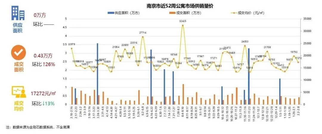 公寓市场:本周公寓无供应,成交0.43万㎡,成交均价17272元/㎡。