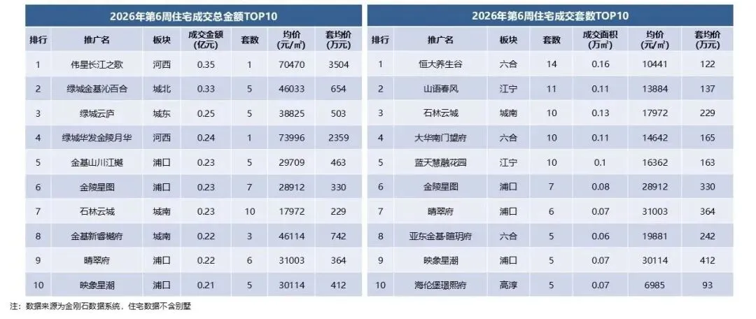 项目排行:伟星长江之歌为本周成交金额TOP1、恒大养生谷为本周成交套数TOP1。