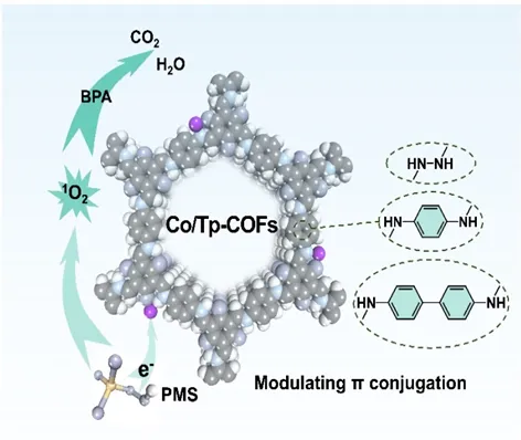 南京理工大学李健生教授团队在《Applied Catalysis B: Environmental and Energy》上发表了最新研究成果。该工作创新性地提出了“第二配位壳层”工程策略,通过将钴单原子锚定于一系列具有不同π共轭程度的共价有机框架中,成功调控了单原子钴位点的电子结构,从而实现了对过一硫酸盐活化路径的精准切换。最优催化剂Co/TpPa在降解双酚A时,反应速率常数高达0.54 min-1,并选择性地生成单线态氧作为主导活性物种。这项工作为从电子尺度理性设计高性能单原子催化剂提供了新范式。