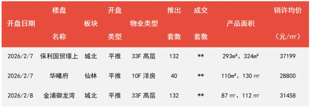 上周3个项目推新,共计推出304套房源,整体去化率约6%,临近年关,各项目虽然积极申领销许补货,但客户购房积极性不强,各项目均去化不佳。