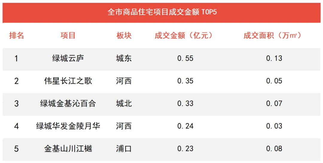 上周各板块均表现平平,浦口板块以62套领先,占全市25%,但各项目成交量也均为个位数,如金陵星图成交7套、晴翠府成交6套;六合与城南板块均以成交34套分列二三位。