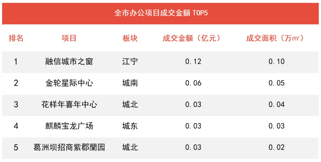 ▶融信城市之窗项目以1244.12万元成为周度办公成交金额TOP1。
