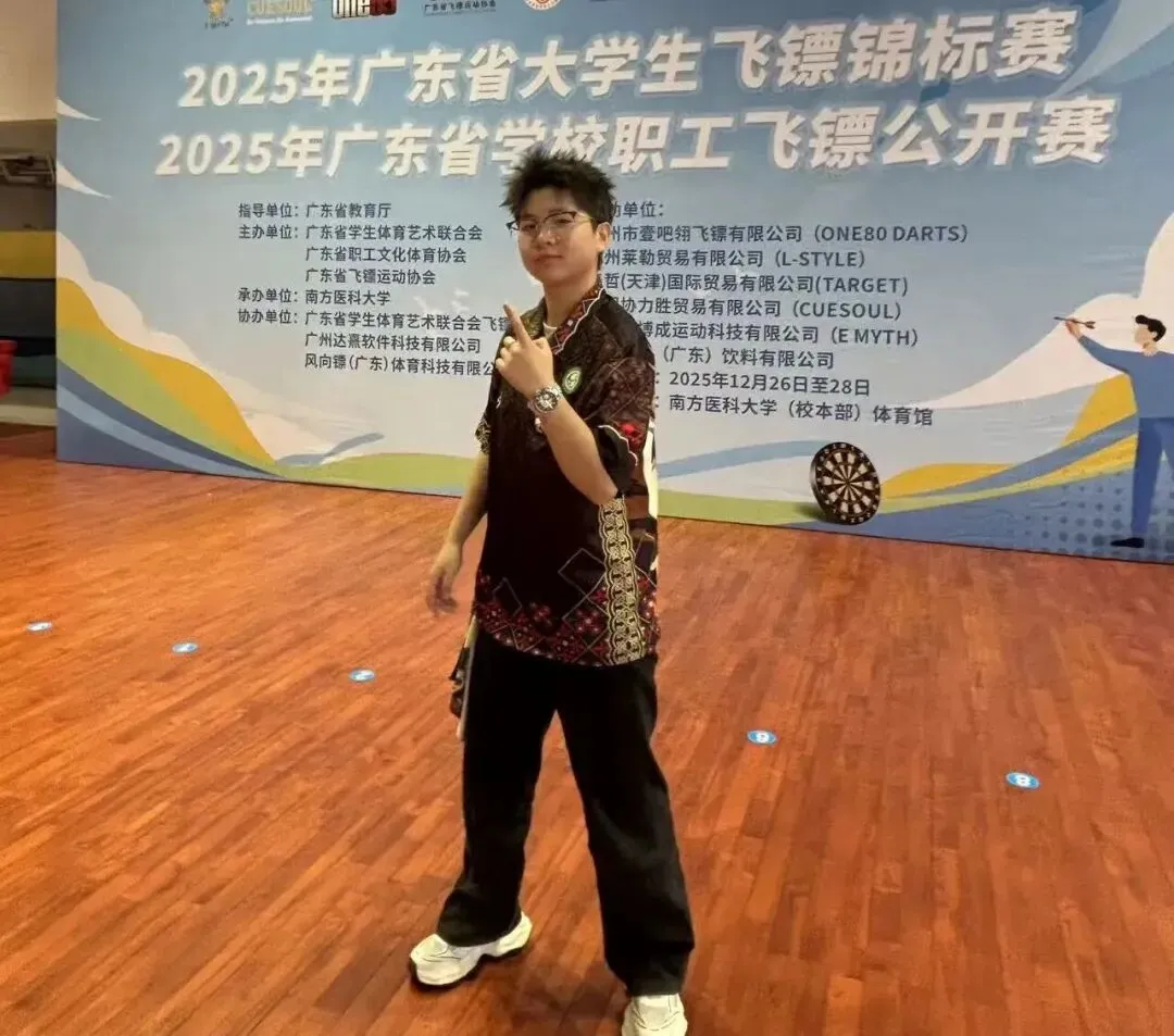 12月底,一场青春风暴席卷南方医科大学体育馆——2025年广东省大学生飞镖锦标赛火热开赛,点燃了300多位位年轻镖手的热情。在一众新生力量中,九牌赞助、签约镖手张熤带队的TEAM SAGI飞镖队的表现格外抢眼,获得了六冠两亚一季的耀眼成绩。