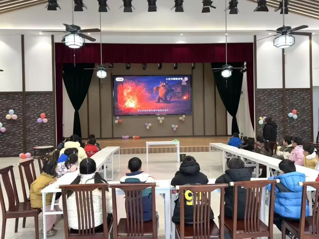 星火社工事务所的杨伟老师通过趣味问答引导孩子们思考春节的文化内涵,动画短片《年兽的故事》生动形象地阐释了除夕守岁、贴春联、放爆竹等传统的由来,通过问答互动,加深了孩子们对传统节日的情感认同。