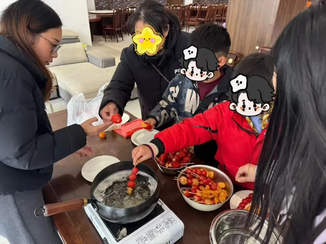 冰糖葫芦制作也备受喜爱,孩子们亲手串果、蘸糖,体验了传统美食的制作过程,香甜的气息弥漫现场,营造出浓郁的传统节庆氛围。