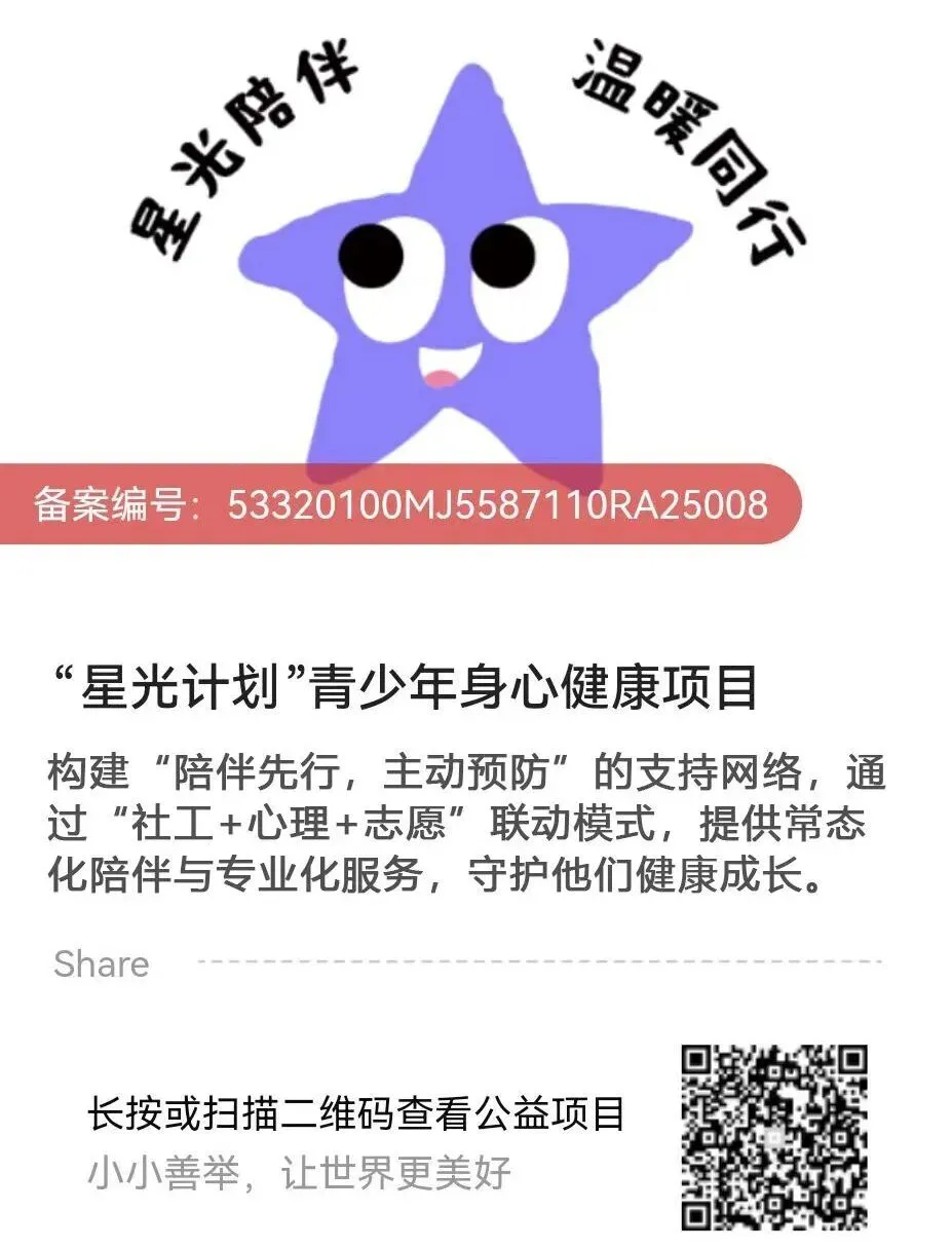 注:“星光计划”青少年身心健康项目公开募捐备案编号:53320100MJ5587110RA25008。