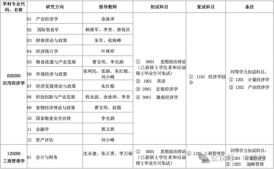 1.招生专业:应用经济学、工商管理学