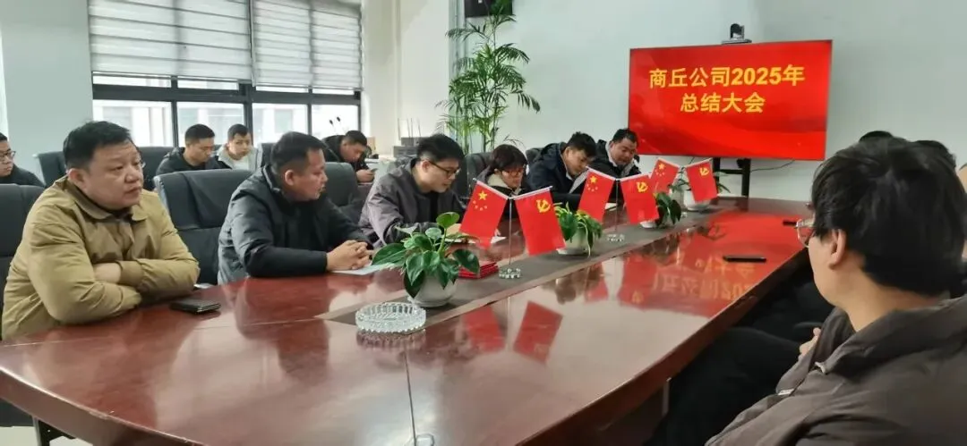 2月9日上午,商丘公司2025年工作总结暨表彰会议在商丘本部会议室召开。集团公司纪律监察审计委副书记李勇、商丘公司总经理关勇以及各部门干部员工参加了会议。