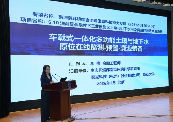 2026年1月28日,京津冀环境综合治理国家科技重大专项项目成果推介交流会在北京顺利召开。本次会议以专项成果转化与应用推广为核心,搭建起高水平、实效化的成果展示与供需对接平台,推动前沿环保技术落地见效,助力京津冀区域生态环境治理提质增效。生态环境部南京环境科学研究所(以下简称“南京所”)牵头承担的“滨海复杂条件下工业聚集区土壤与地下水污染溯源控源技术及应用”(项目编号:2025ZD1205900)项目,集中展示两项核心技术成果,凭借针对性与创新性引发参会专家及产业代表的高度关注。